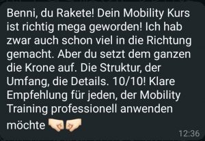 Das ist sogar erwünscht! Das integrierte Mobility Programming dient dir als perfekter Einstieg für deinen ersten, eigenen Mobility Kurs. Zusammen helfen wir so möglichst vielen Menschen zu körperlicher Freiheit. Und um keine Zeit mit lästiger Planung zu vergeuden, übernehmen wir das Schreiben des Mobility Programming für dich!